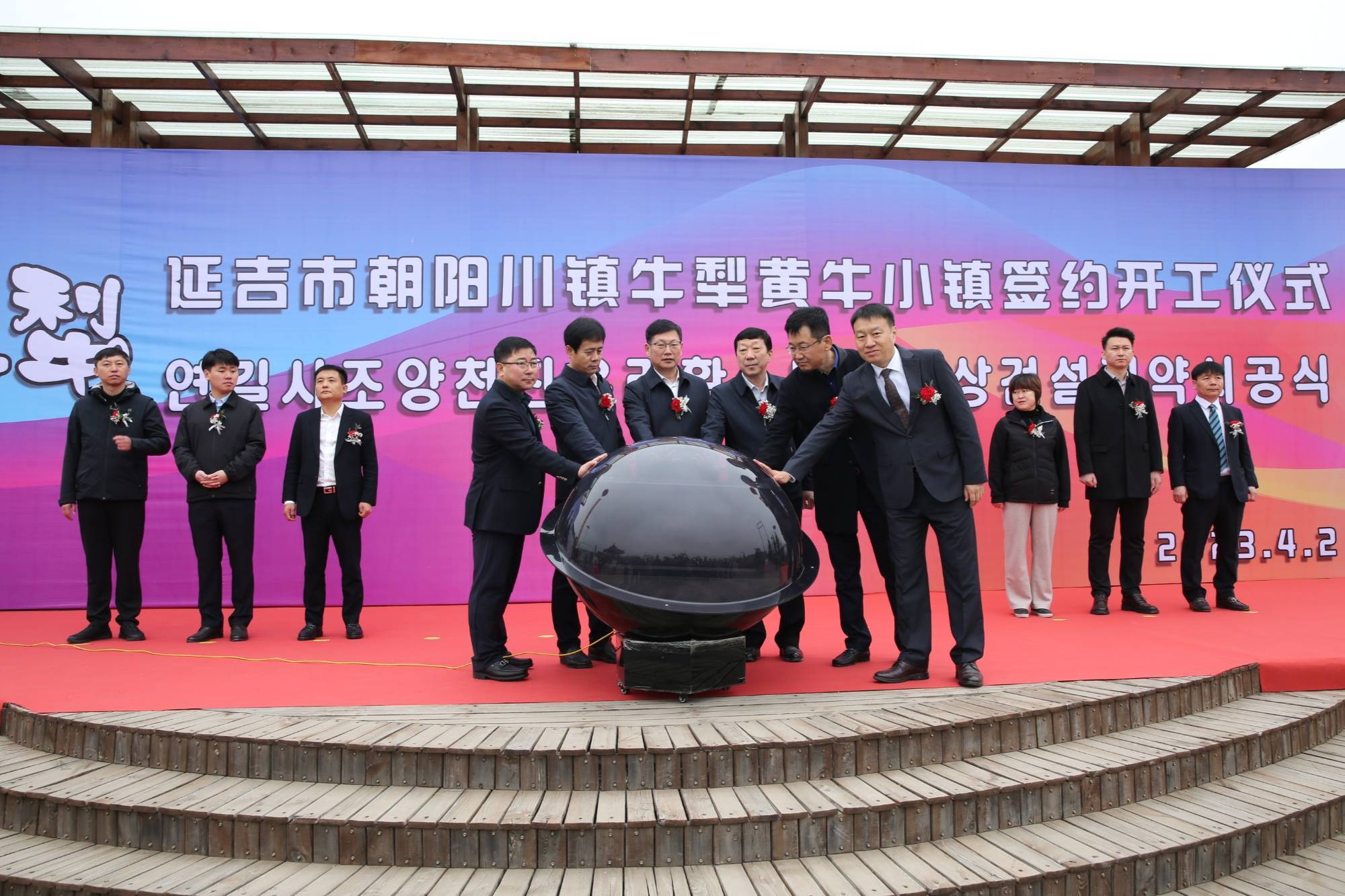 央广网延吉4月2日消息 (见习记者张学龙)4月2日,延吉市朝阳川镇牛犁黄牛小镇项目签约开工仪式在仲坪村举行。
