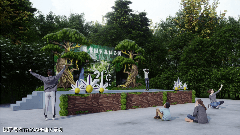 对于原有舞台进行舞美化处理,运用森林元素,可根据需求增加LED显示屏,突出主题及科技感,可应对各种室外活动。