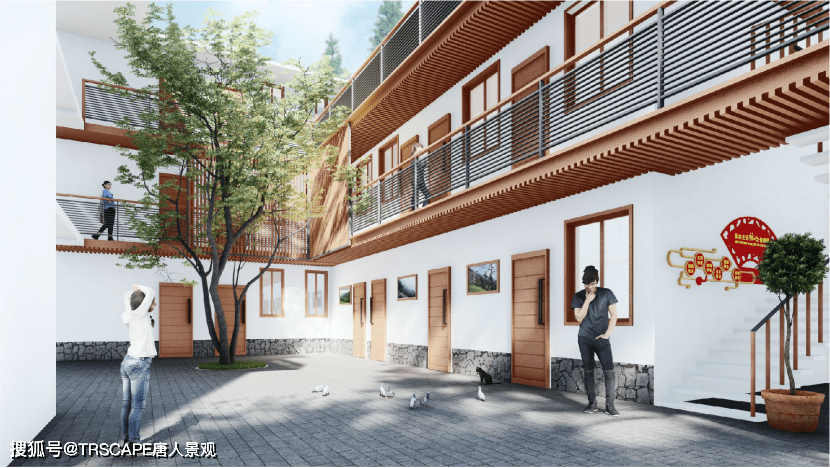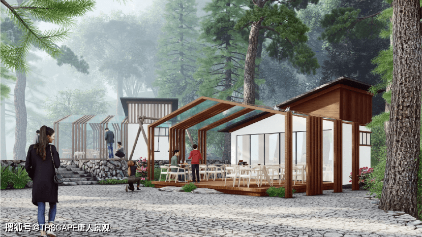 原始建筑的临街房屋主要用于农家乐,改造后采用前服务,后办公的布局。对临街建筑部分进行立面及室内格局改造,园区办公功能依附于现在空间格局,进行立面翻新及更换门窗。