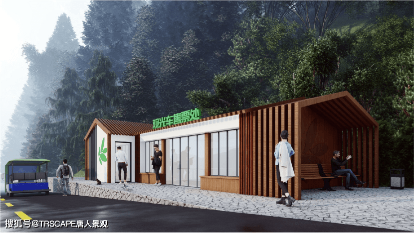 建筑结构外立面不变,依据建筑门窗位置进行改造,通过增加采光面积,提升建筑通透性,增加醒目标识提升景区识别性,建筑立面以白色与原木色进行搭配,线条简约。