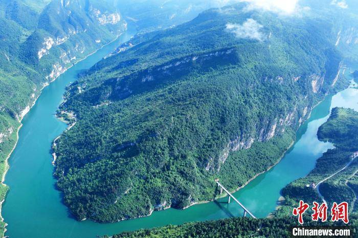 图为航拍乌江重庆酉阳段,峡谷清幽,碧波荡舟,宛如山水画卷。 陈碧生 摄