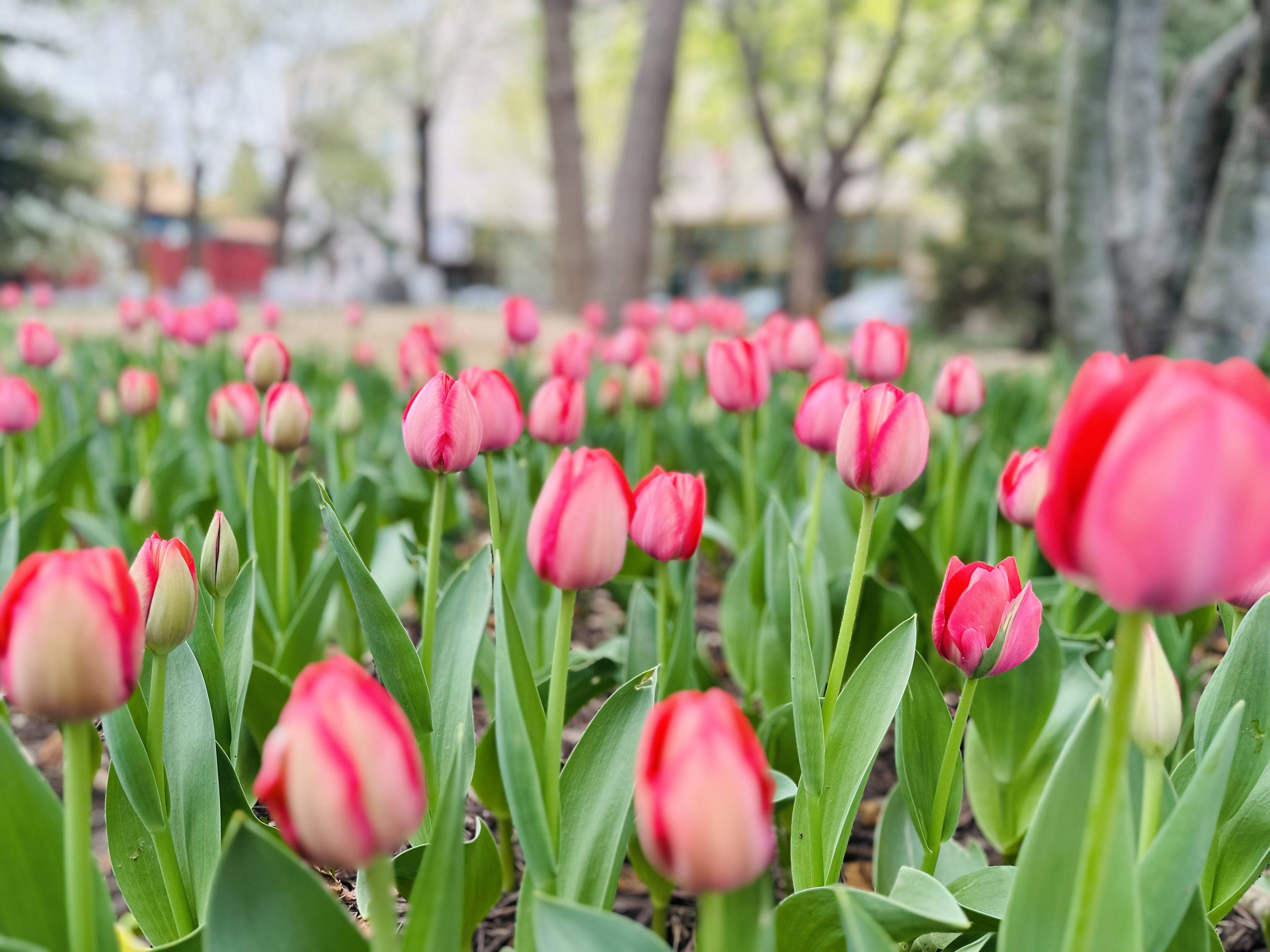 为了满足游客赏花需求,公园通过色彩搭配、科学混栽、花期配置等方法,使不同花期的郁金香陆续开放,给游客带来不同时段欣赏不同美景的美好体验。目前是早花品种郁金香初开,开放率为15%。同时,园内还种植了大量颜色鲜艳的矮牵牛、三色堇、羽扇豆等近5万株地栽草本花卉,提高观赏效果。