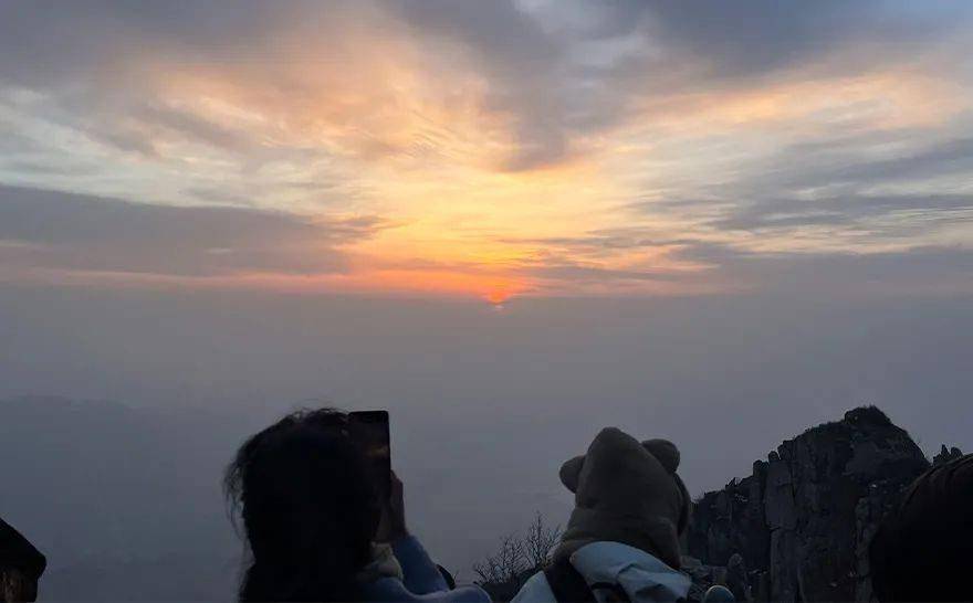 虽然看不到云海,但是可以看到泰山日出。他的美让我不知所措。与实际风景相比,我记得的任何一首诗都显得苍白无力。本来以为大家会在看日出的时候大喊大叫,没想到那一刻鸦雀无声。漫山遍野的人群都舍不得发出一丝呼吸声,听着太阳滑过云层的声音,那是风的声音,是云的声音,也是每个人心跳的声音。