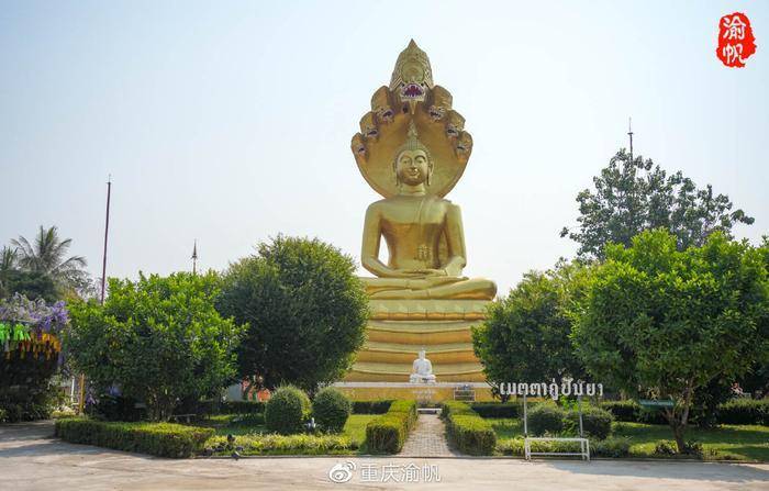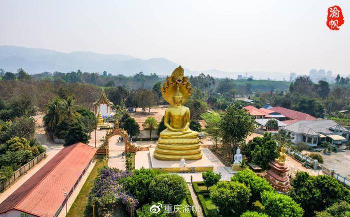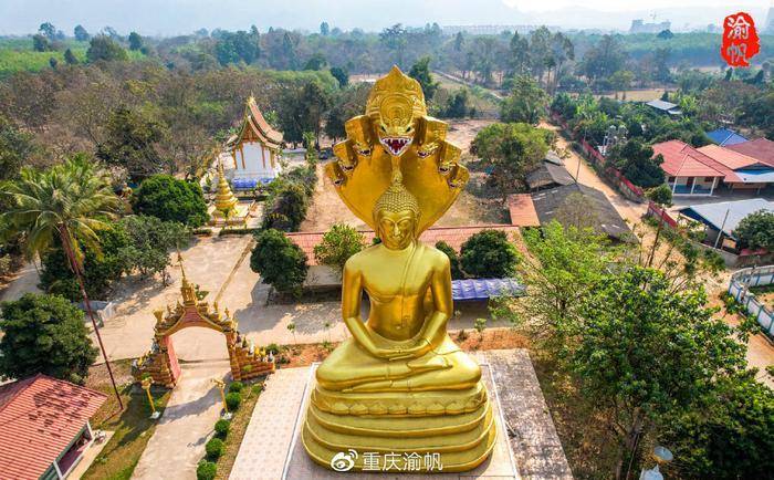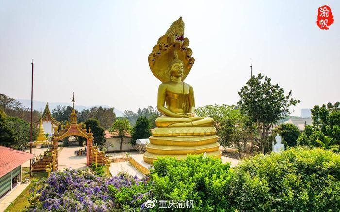 为什么叫栖龙寺呢?因为寺庙中最高的室外佛像头上有7个龙头,这可能是我们对这座寺庙的独特命名。这尊佛像距眼侧20多米,通体贴金,在阳光的照耀下熠熠生辉。