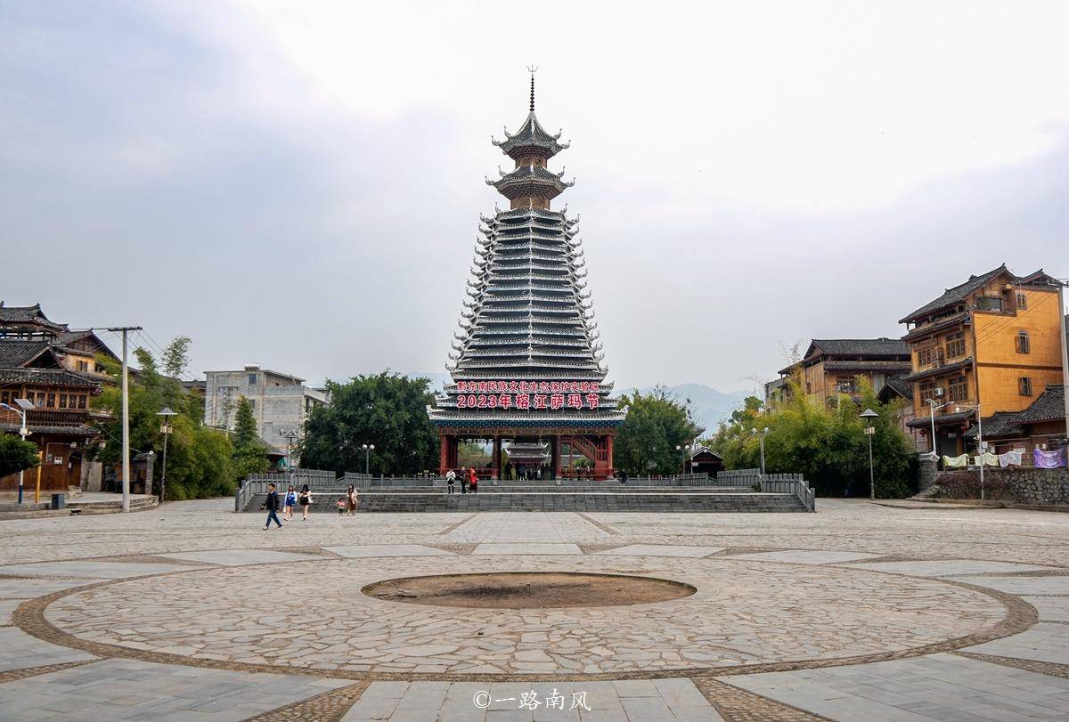 世界上最高最大的侗族鼓楼位于贵州第一侗寨。