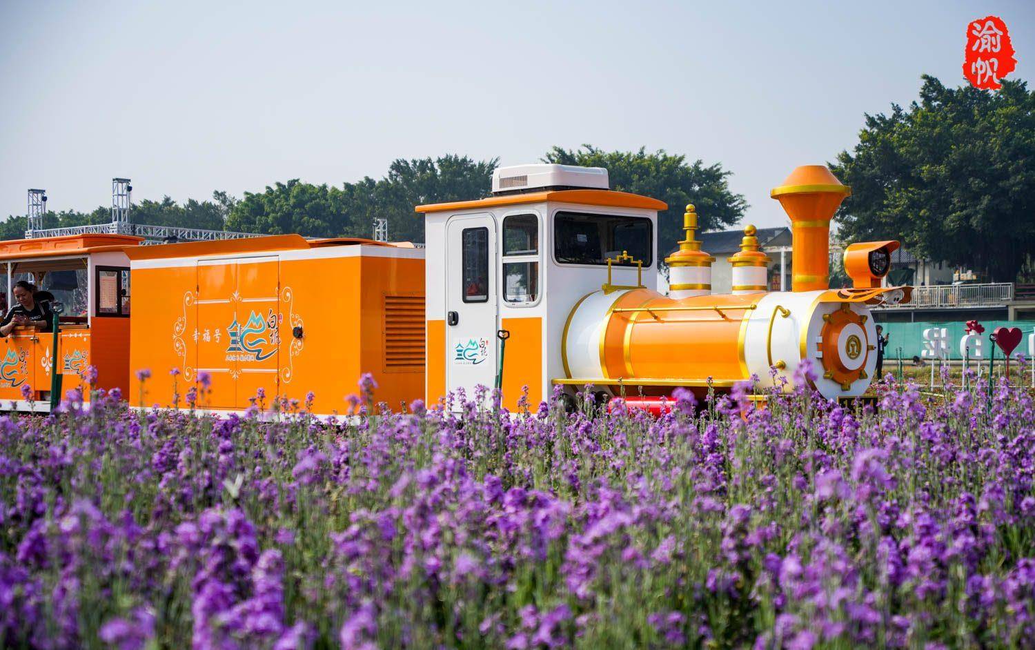 在三水白泥镇五彩斑斓的花田里,游客可以赏花,也可以乘坐小火车穿梭游览花田中。有的直接在帐篷里泡茶聊天,在天上聊天。在舞台上,说不定晚上会有精彩的表演呢!