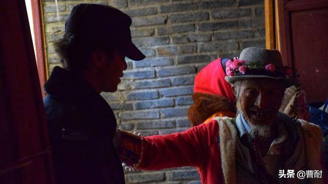 老大爷的穿着很网红,会与游客合照,可是他的帽子里其实是收款码。