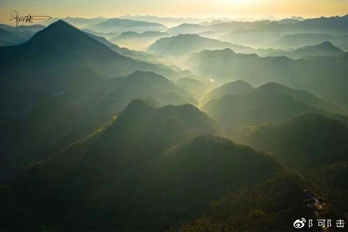 言归正传,日出的过程很快,离谷底只有十分钟左右。在浮云岭身上,可以清楚地看到,远处的“浮云”并没有在太阳一升起就消失。如果找角度,甚至可以捕捉到“耶稣之光”。可惜这一天没能遇见色彩更妖娆的朝霞,不然就更完美了。