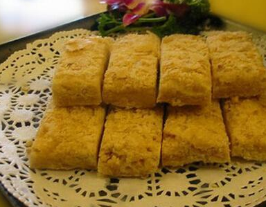 它比较像我们平常吃的杏仁糕、桂圆糕等,但那些都是被加工过的,装在包装里面,而河南的花生糕是现做的,成品呈片状,疏松度强,入口即化,可以说是相当美味,很多老人都比较喜欢吃。