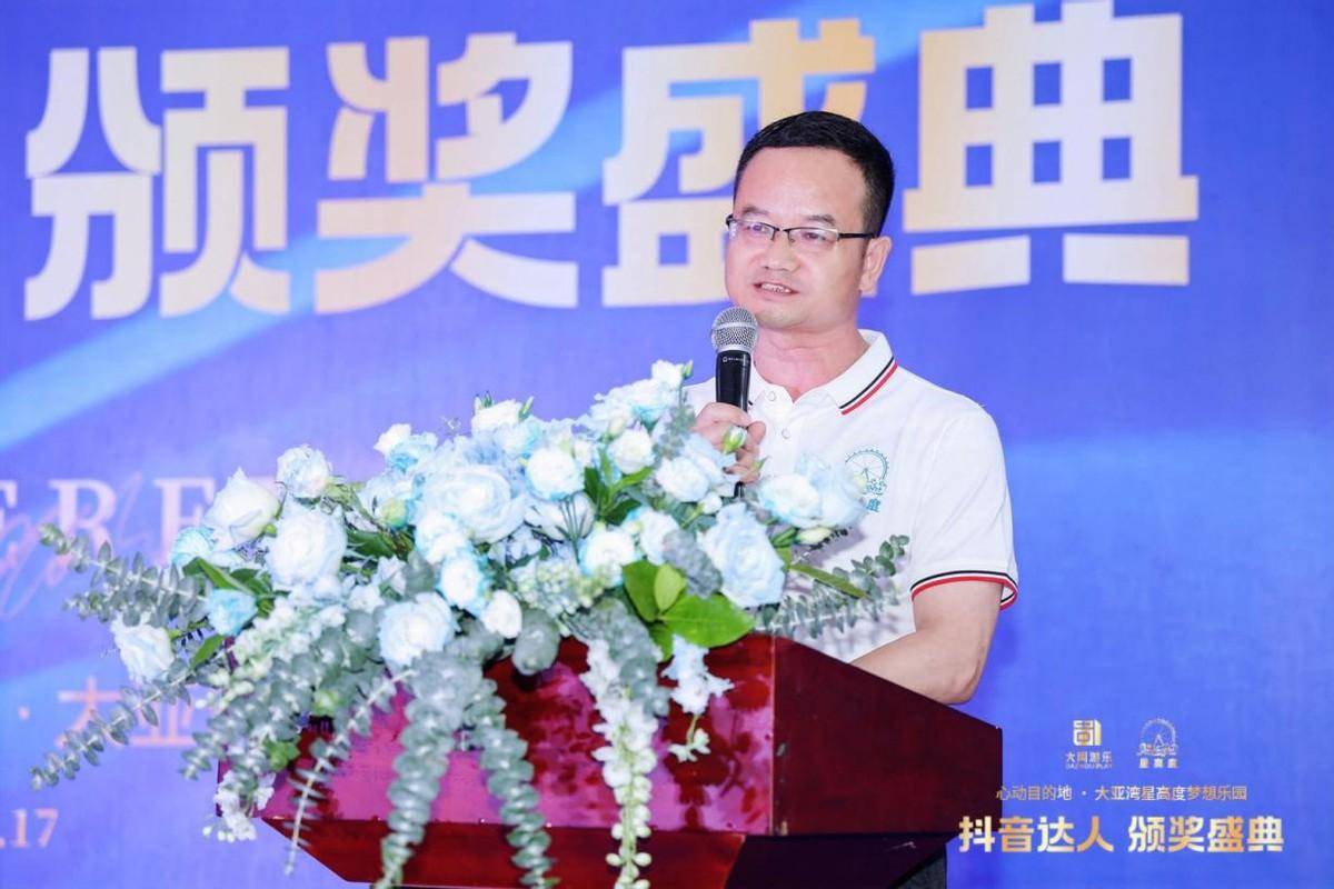 颁奖现场大周游乐集团罗总首先向参会嘉宾致欢迎辞,对到场嘉宾表示欢迎与感谢;随后大亚湾旅游协会会长冯槟成先生、大亚湾星高度梦想乐园负责人温绍芳先生、抖音生活服务酒旅行业广东景区游玩客户经理肖爱玲女士先后致辞表示祝贺。