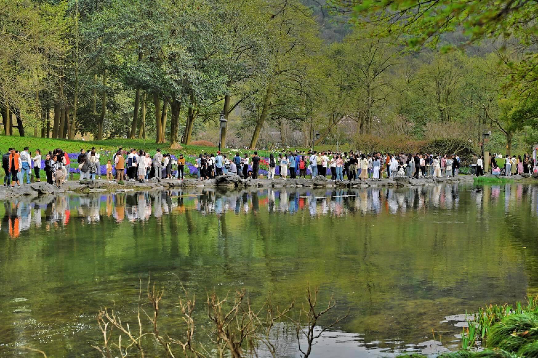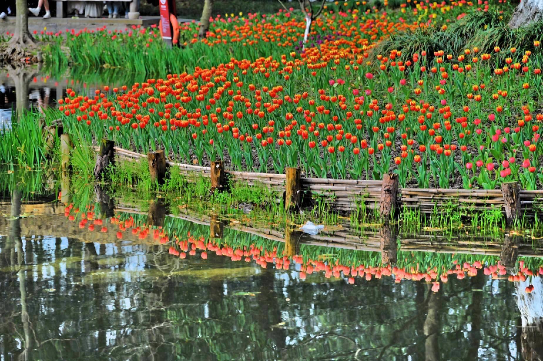 第一个推荐的赏花点:太子湾公园,几乎是杭州春季赏花点的天花板。太子湾公园的郁金香从四月中旬开始争奇斗艳,黄的、红的、粉的、白的、紫的,五颜六色的点缀在草地和湖边,可谓是美不胜收。