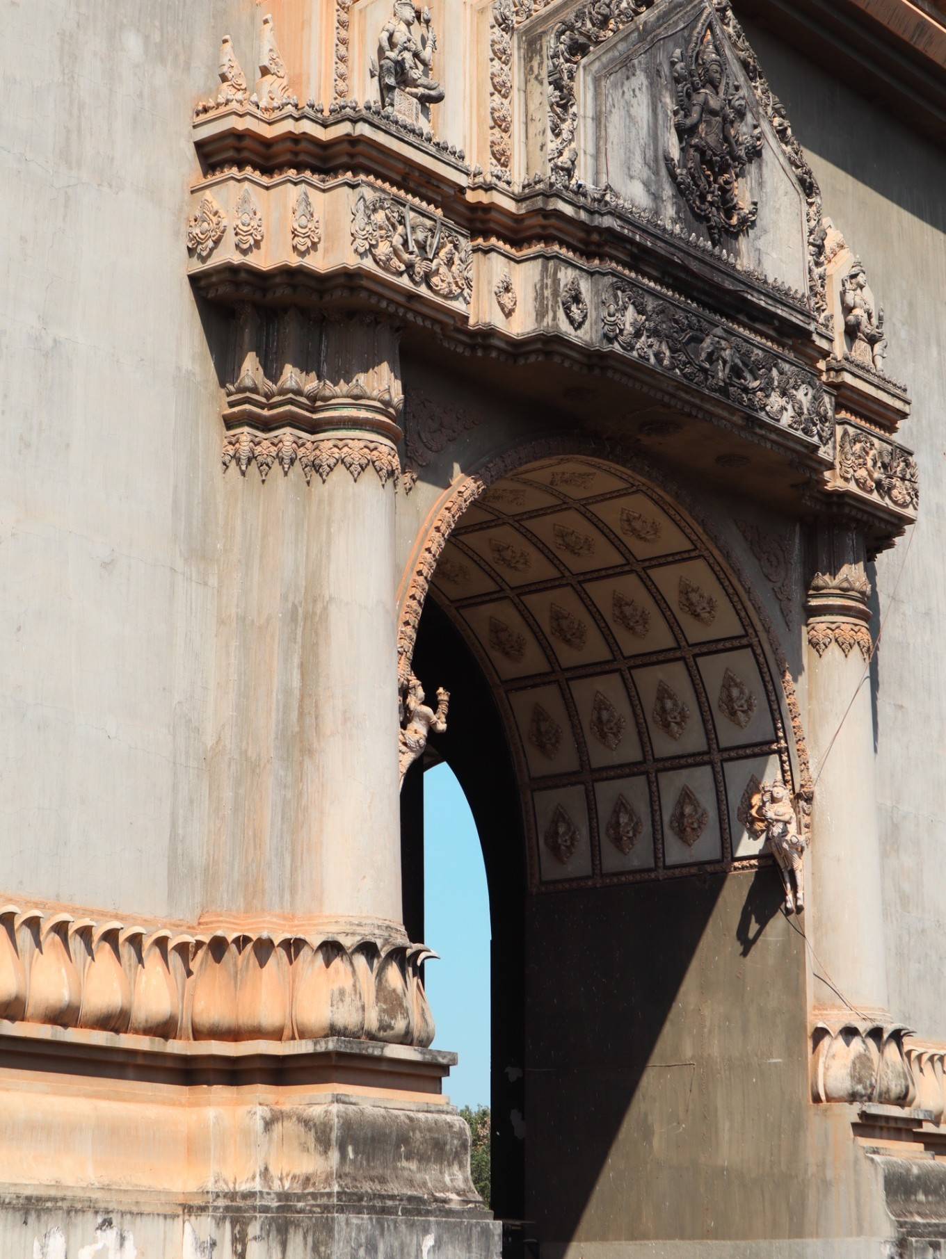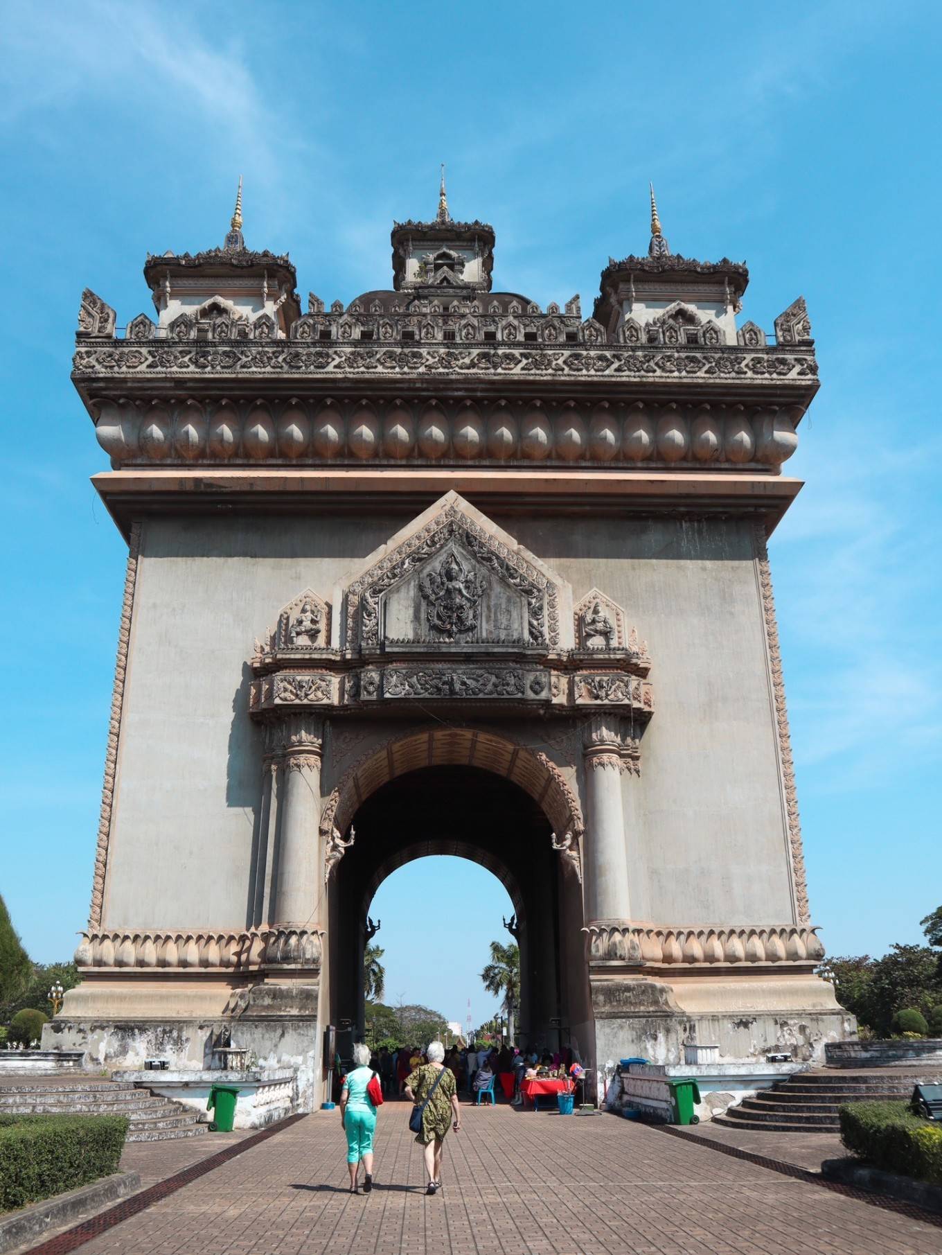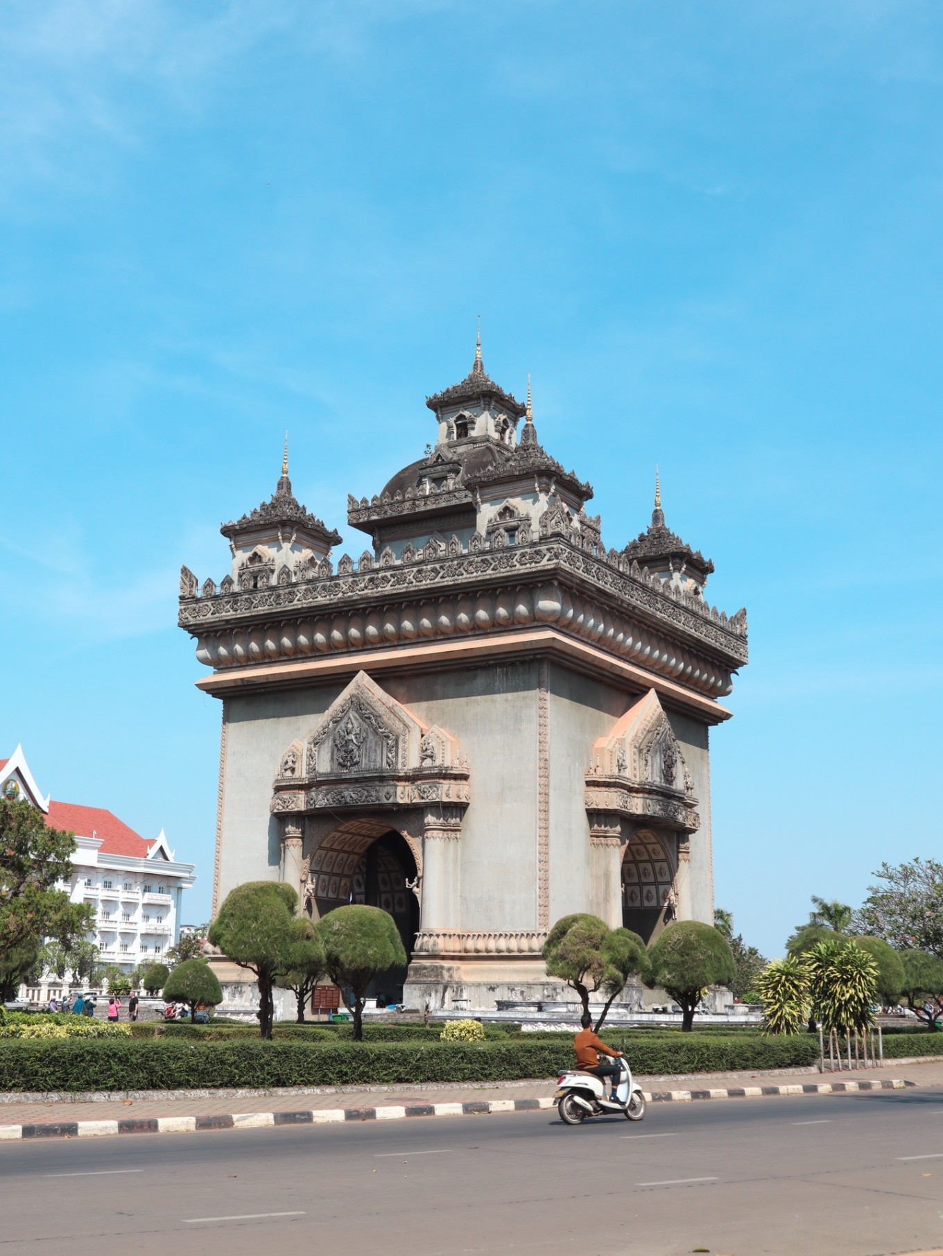凯旋门:纪念 老挝 人民解放独立而建,位于最繁华的主干路上,远看确实跟 法国 凯旋门 大同 小异,但规模却比较小,凯旋门上有充满佛教和本土特色的雕刻和装饰,这种融合的感