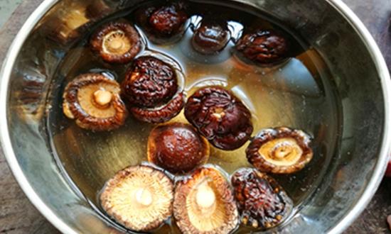 食材:苦瓜一个,干香菇适量,猪肉250克,生抽,淀粉,料酒,鸡蛋,蒜瓣,姜末,食盐,食用油,鸡精