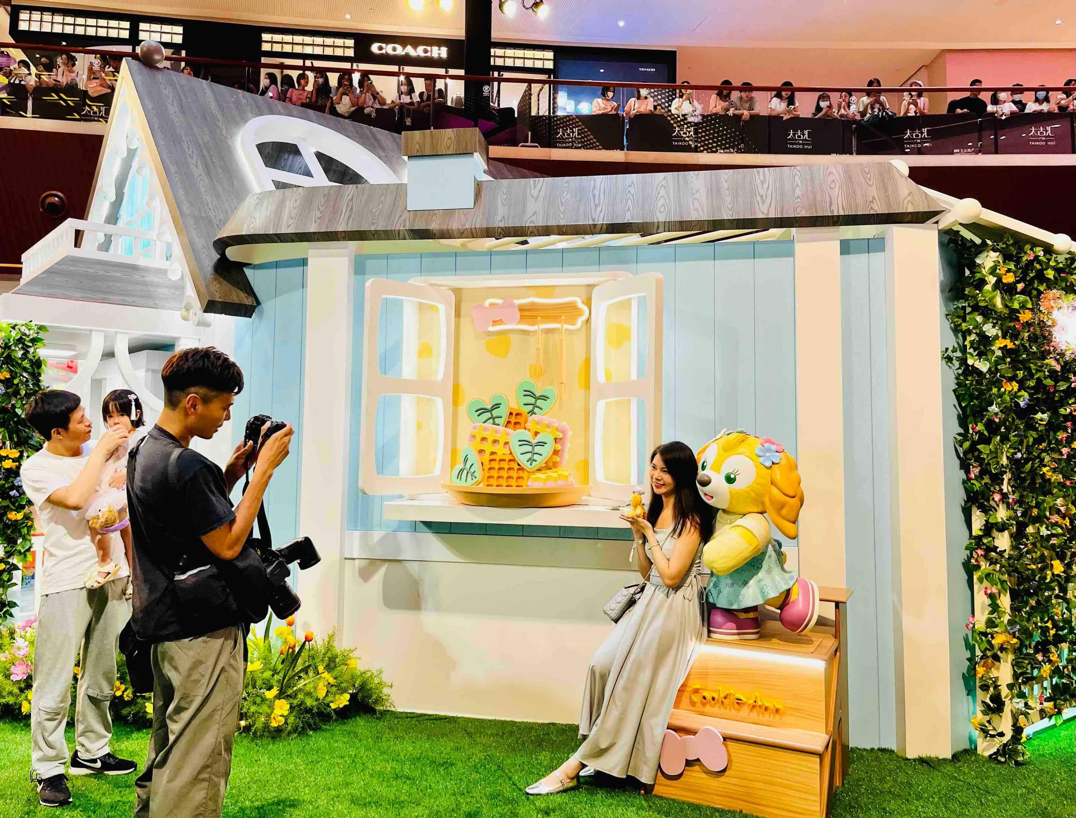 此次亮相广州太古汇的主题展览,还原了迪士尼知名IP达菲与好友在森林小屋的玩耍场景,游客穿过绿植环绕的拱门,将进入达菲与好友的故事世界,开启和达菲、雪莉玫、杰拉多尼、星黛露、可琦安、奥乐米拉和玲娜贝儿一起玩耍的欢乐旅程。
