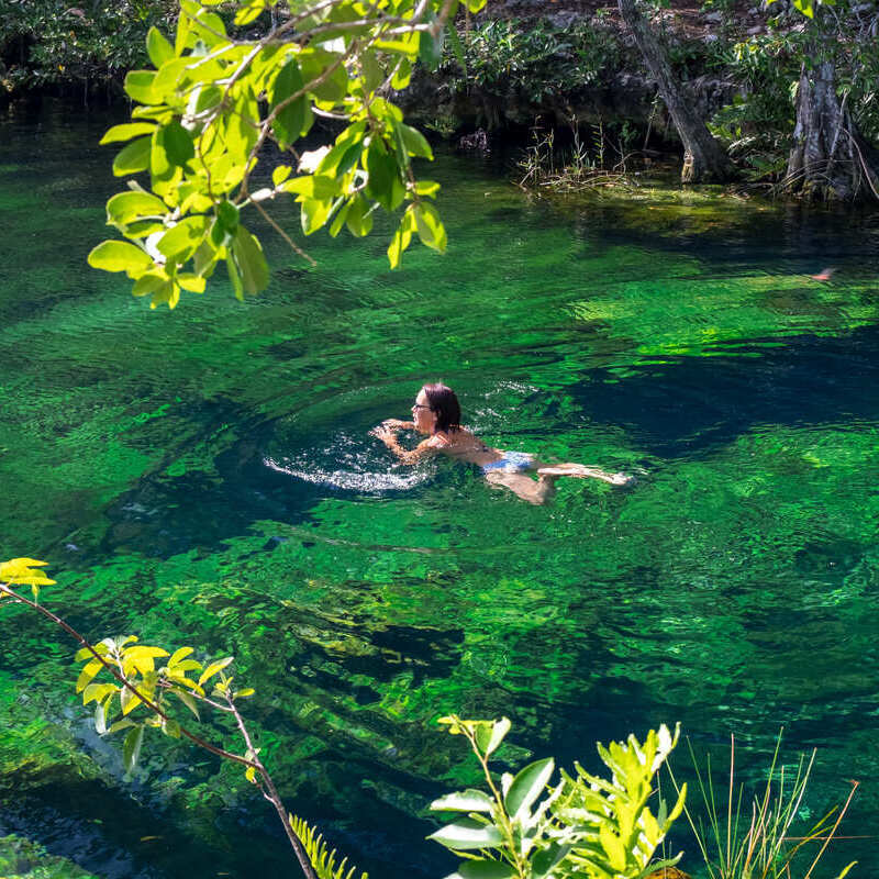 参观天然井是逃离夏季在墨西哥东南部定居的压倒性湿度的好方法,而且由于它们不是由海洋供应的,因此它们是坎昆海藻遍布的海滩的绝佳替代品。
