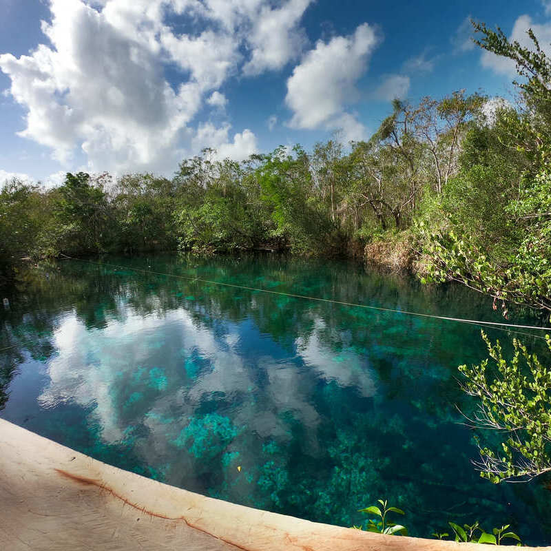 这是一个明亮的蓝色泻湖,被一圈树木包围的石灰岩盆地中,是里维埃拉玛雅最美丽的天然井之一。它还具有天然的跳跃点,使其成为悬崖潜水员中备受追捧的地方。
