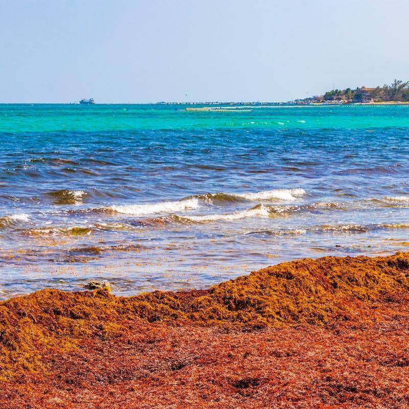 藻类几乎无害,但它们以闻起来令人不快而闻名,当它们沿着海岸堆积时,它们会玷污墨西哥加勒比海海滩闪闪发光的白色沙滩。