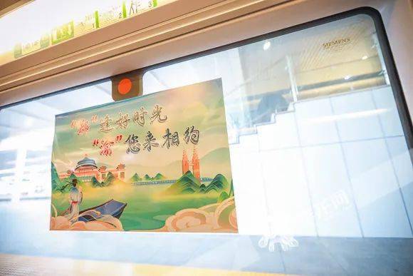 列车车窗张贴有本次活动主题海报。华龙网-新重庆客户端 首席记者 李裕锟 摄