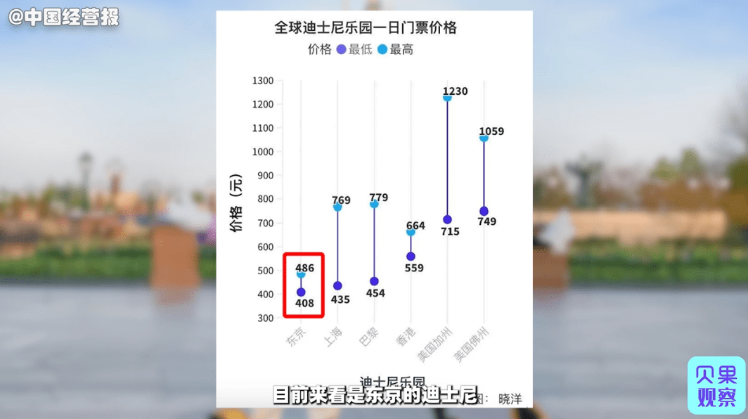 至于上海迪士尼门票,它的最低票价可排到全球第二便宜,最高票价也能跻身平价榜第3位。即使6月涨价后,它的基础票价依然处于全球迪士尼乐园的低位。