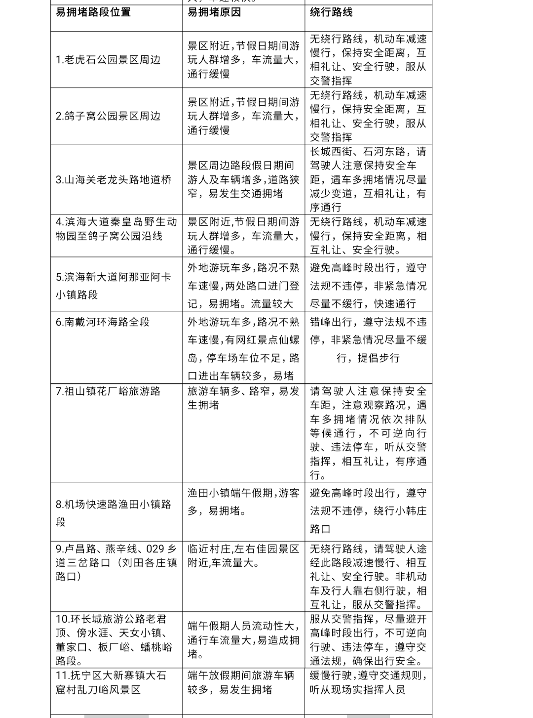 1.自驾出行请合理安排时间、规划出行线路,避免集中出行。出行前通过广播电视、网络、交警部门官方微博、微信平台详细了解出行线路、施工路段、交通流量预测及绕行分流路线,避免拥堵,影响出游心情。