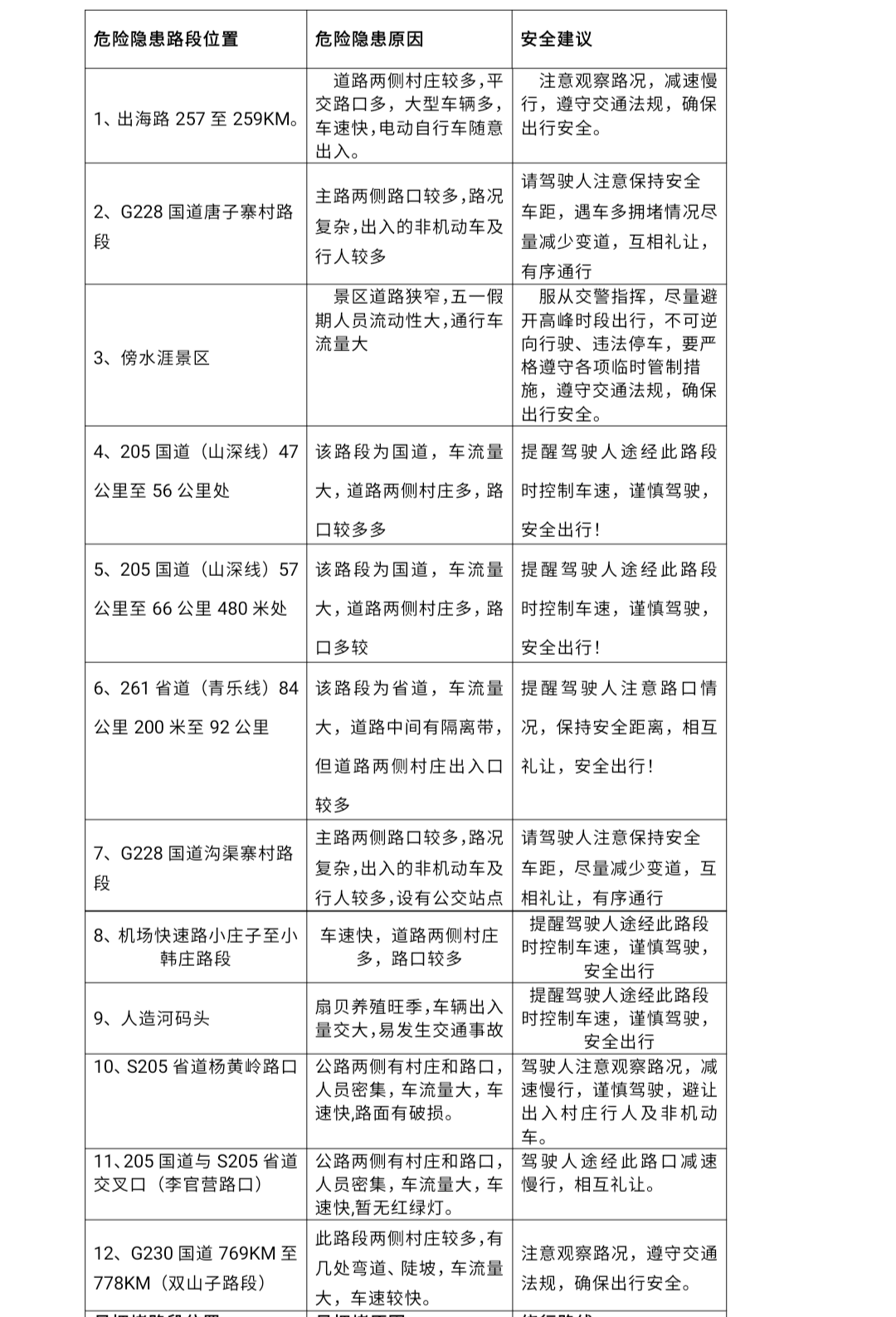 危险隐患路段