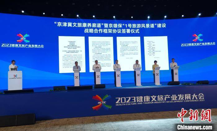 开幕式上,北京市旅游行业协会、天津市旅游协会、河北省旅游协会、中国旅游协会健康旅游分会、中国非物质文化遗产保护协会中医药委员会、保定市文化广电和旅游局共同签署“京津冀文旅康养廊道”暨京雄保“1号旅游风景道”建设战略合作框架协议。