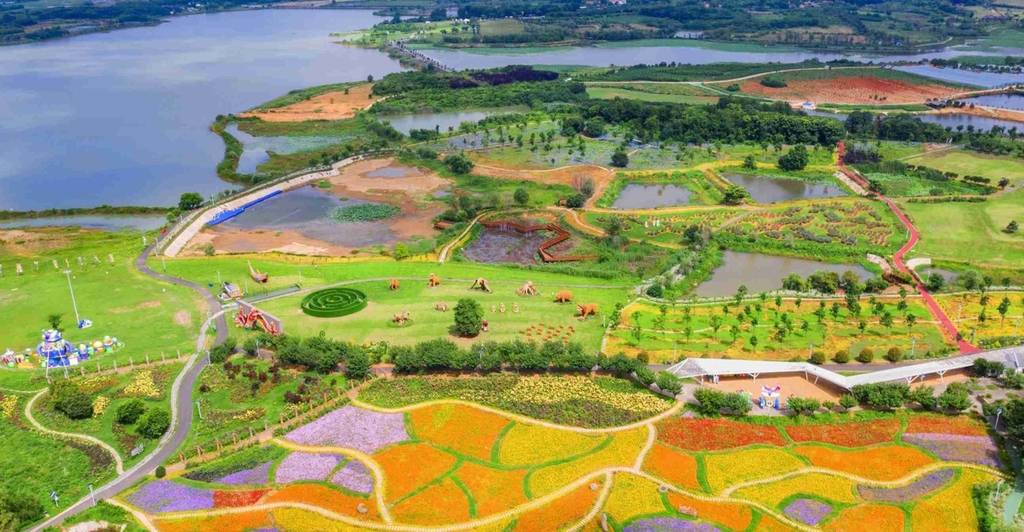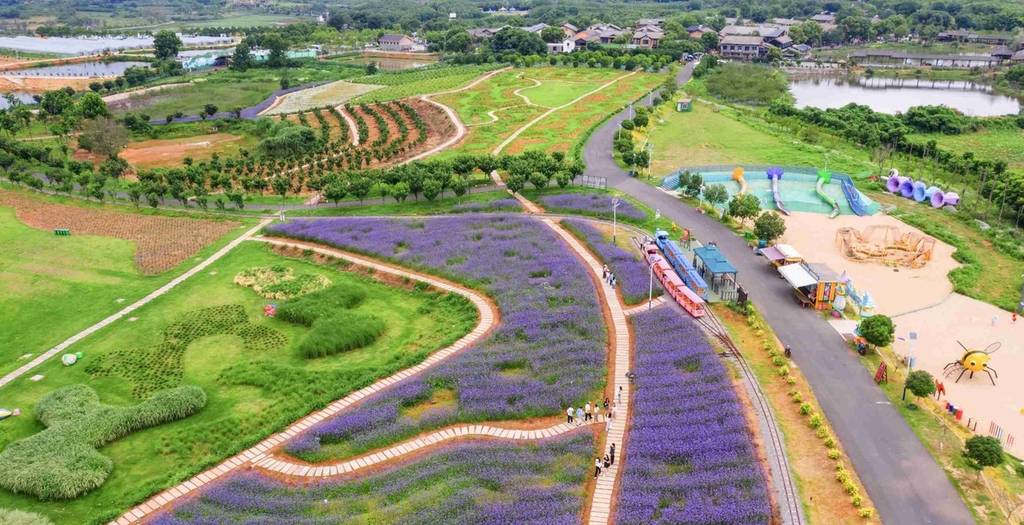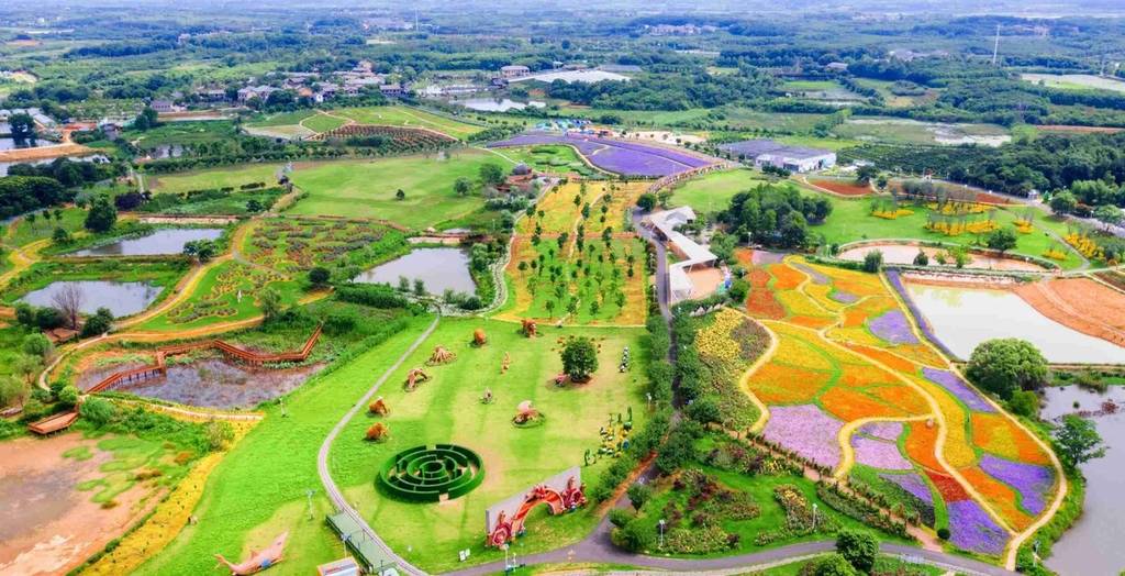 湖北武汉,江夏牧场风景色彩斑斓美如画,吸引大量游客纷纷打卡。