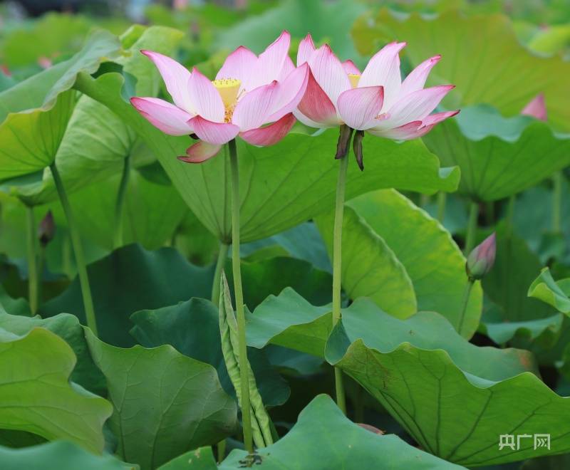 荷花竞相绽放(央广网发 李新春摄)