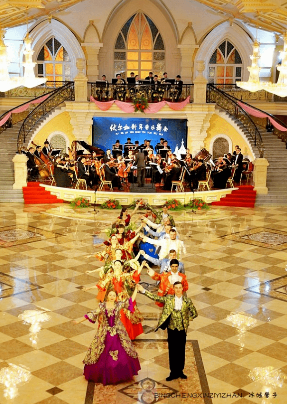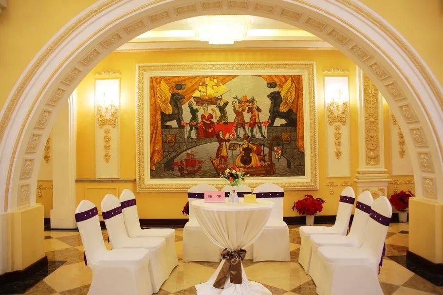 这座恢宏大气精美的建筑是彼得洛夫宫,它以新圣女修道院为模板,兼顾建筑之形与文化之意。如果你走进这座宫殿,便会为金色大厅的金碧辉煌、精致的壁雕、根雕所震撼。一楼大厅里陈列着十幅大型壁画,均来自于世界著名四大美院之一的俄罗斯列宾美术学院的原创作品;二楼的廊道间展示着数十幅俄罗斯著名画家的油画作品。走进艺术宫,宛如畅游在艺术的殿堂。