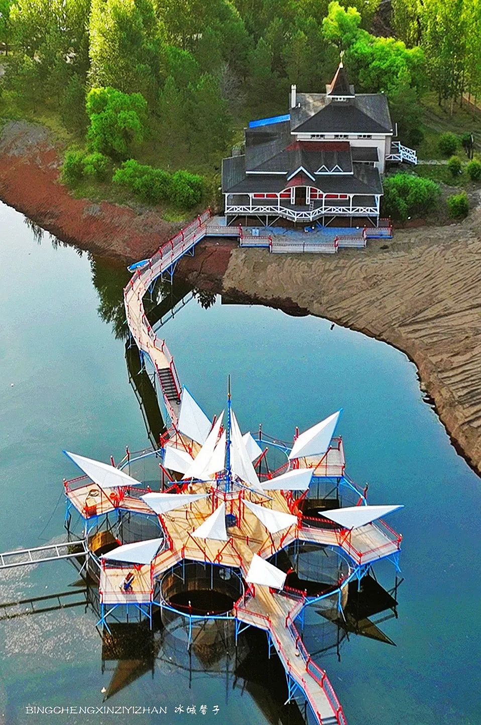 伏尔加庄园可以钓鱼了!建设中的钓鱼村预计七月完工,通向河中心酷似雪花瓣形状的钓鱼台是伏尔加庄园又一亮丽的新景观,空中看又似一朵白莲花开在阿什河上。廊桥连接的钓鱼饭店,是以俄罗斯圣彼得堡西部“十字岛景区”里的钓鱼饭店为原型建造的。坐在雪花钓鱼台上垂钓,既可以寻找垂钓的悠然,还可以将自己的成果进行加工,这里的口号是“最美味的鱼是自己捕获的!”