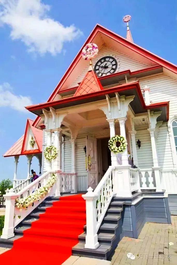 在庄园里,阿什河畔的一座小山上有个红白相间的教堂,这是玛丽亚婚礼教堂,专门为新人举行西式婚礼的地方。这个教堂是哈尔滨首个以空中花园为背景的婚礼场地,走过200米铺满鲜花的基石,踏入红毯,许下爱誓言。这里还是庄园观赏景区风光的高处观景台,非常适合远眺和拍摄。