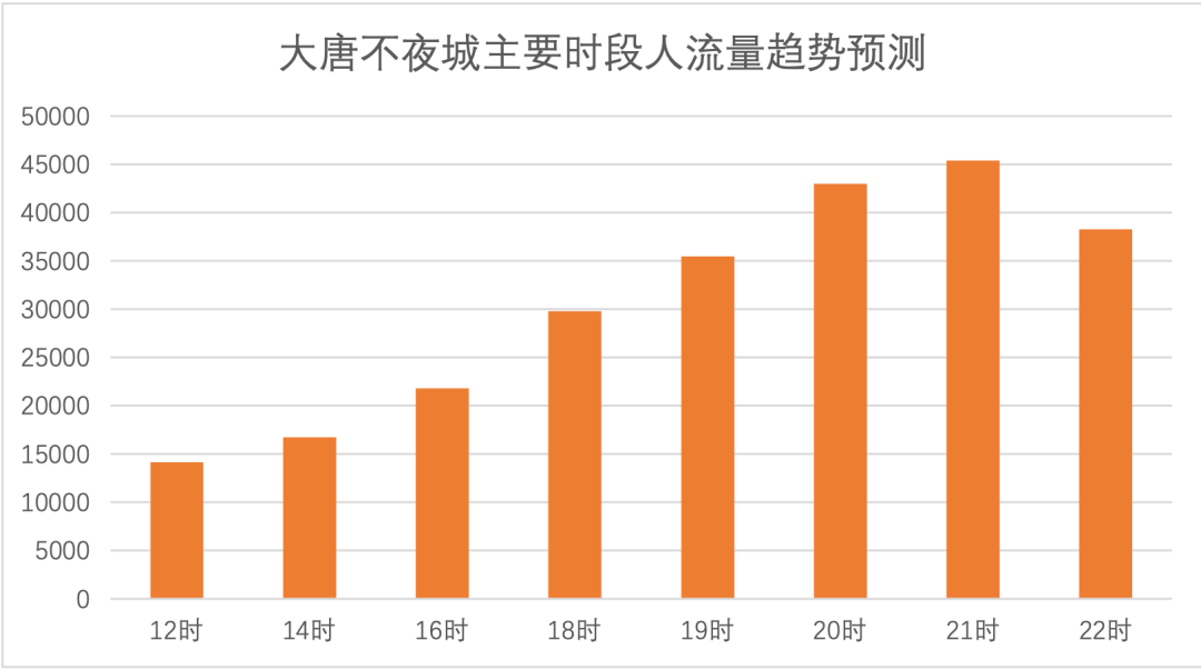 节日期间,全市十大热门景区(大雁塔、大唐不夜城、 大唐芙蓉园、钟楼、南门、回坊风情街、永兴坊、兵马俑、白鹿仓、陕西历史博物馆)将出现人流高峰,其中大雁塔、大唐不夜城、大唐芙蓉园景区人流量高峰主要集中在晚间,兵马俑、白鹿仓、 陕西历史博物馆人流高峰主要集中在白天,重点景区人流量趋势预测如下: