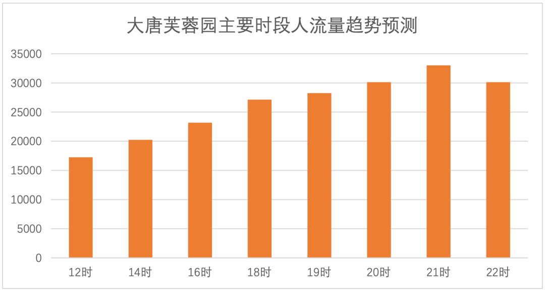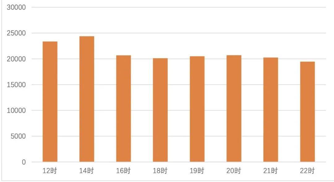 11-12时人流量达到高峰状态,14时达到峰值后,高位运行持续至22 时。