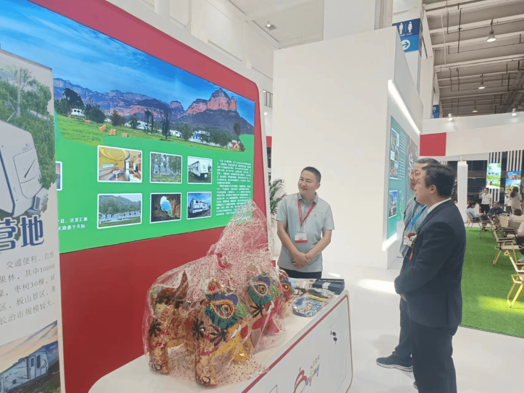 北京市文化和旅游局在本次展会上搭建了“北京文化露营区域合作展区”,综合视频、图片、实物展示等形式,辅以声光电效果进行展示。展会期间,吴鸿宾副局长和北京市文化和旅游局相关处室领导进行了沟通交流,就文创产品开发、文旅融合项目建设、景区宣传营销、智慧旅游建设和客源互送等情况进行了沟通交流,并对下一步对口合作模式进行了探讨。