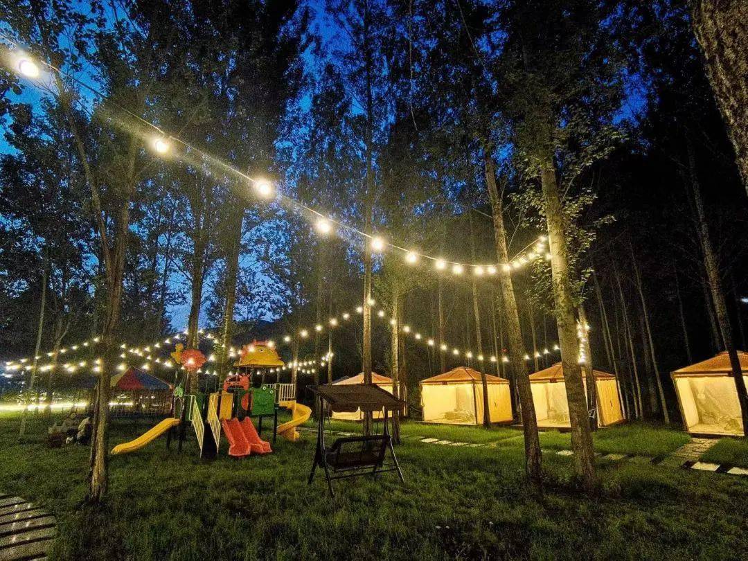 贝斯特度假露营占地面积27000平方米,配备30顶帐篷及桌椅等设施,适合家庭聚会、公司团建、亲子游玩。