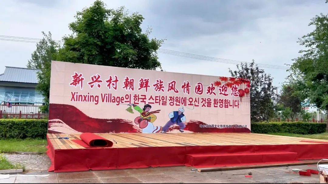 新兴村大舞台正在紧张地搭建中,端午节当天举行开幕式,端午节期间每天都会有丰富多彩的朝鲜民族表演,欢迎大家前来观看。喜欢户外烧烤的可以在我们大广场,一边烧烤一边观看表演,记得晚上还有篝火晚会哦!