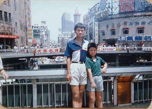 20多年前的南京路,还不是步行街,看那两节的铰链式大公交车,现在早就没了;