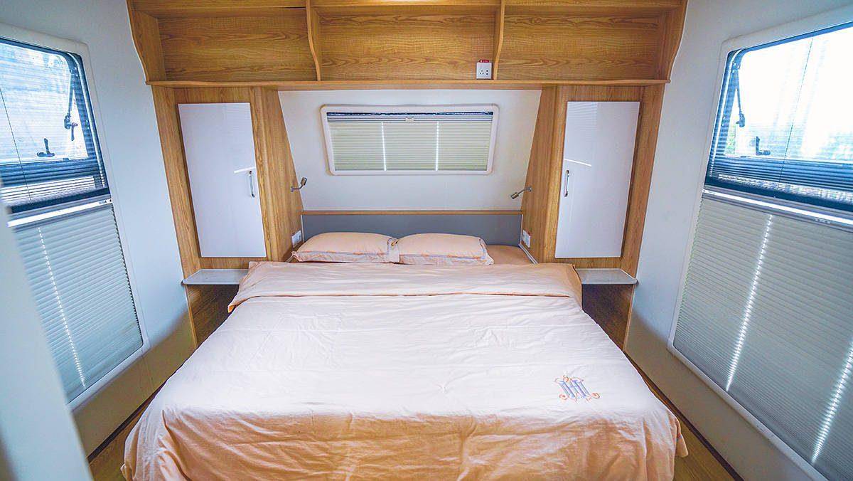 这里的旅行车空间很大。部分房间专为家庭住宿而设计,设有儿童上下铺,车内还配备了家具和电器。大篷车周围有很多窗户,采光非常通透,可以看到外面的天气和光线,也不会错过这里海滩日出时变幻的光影。