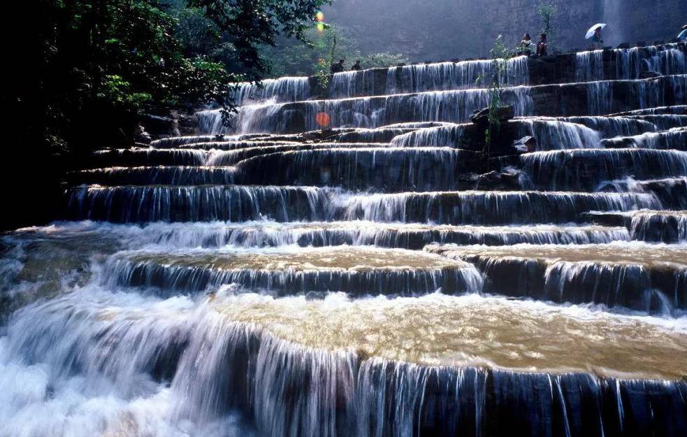 二是天梯木栈道,是一条全长180多米的天梯,由650多级台阶组成。木栈道两边虽然有栏杆,但木台阶发出的嘎吱声,时常让人有种快要折断的感觉。最后一个是天河瀑布,这是一条长220米的瀑布。水流从百米高空垂直落下,发出震耳欲聋的轰鸣声,几公里外都能听到。