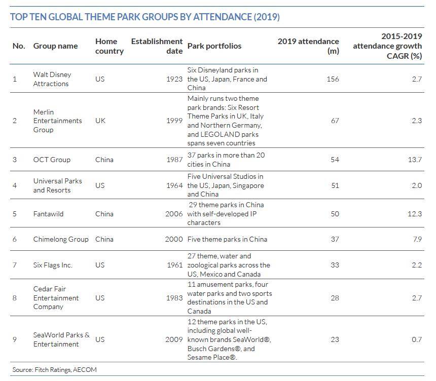 根据惠誉发布的《我们主题公园产业蓝皮书》,默林娱乐集团和乐高乐园度假区拥有约6700万游客(2023年数据),仅次于迪士尼(15.6亿);母公司华侨城集团、环球影城娱乐集团、华强方特和长隆集团分列第3-6位。