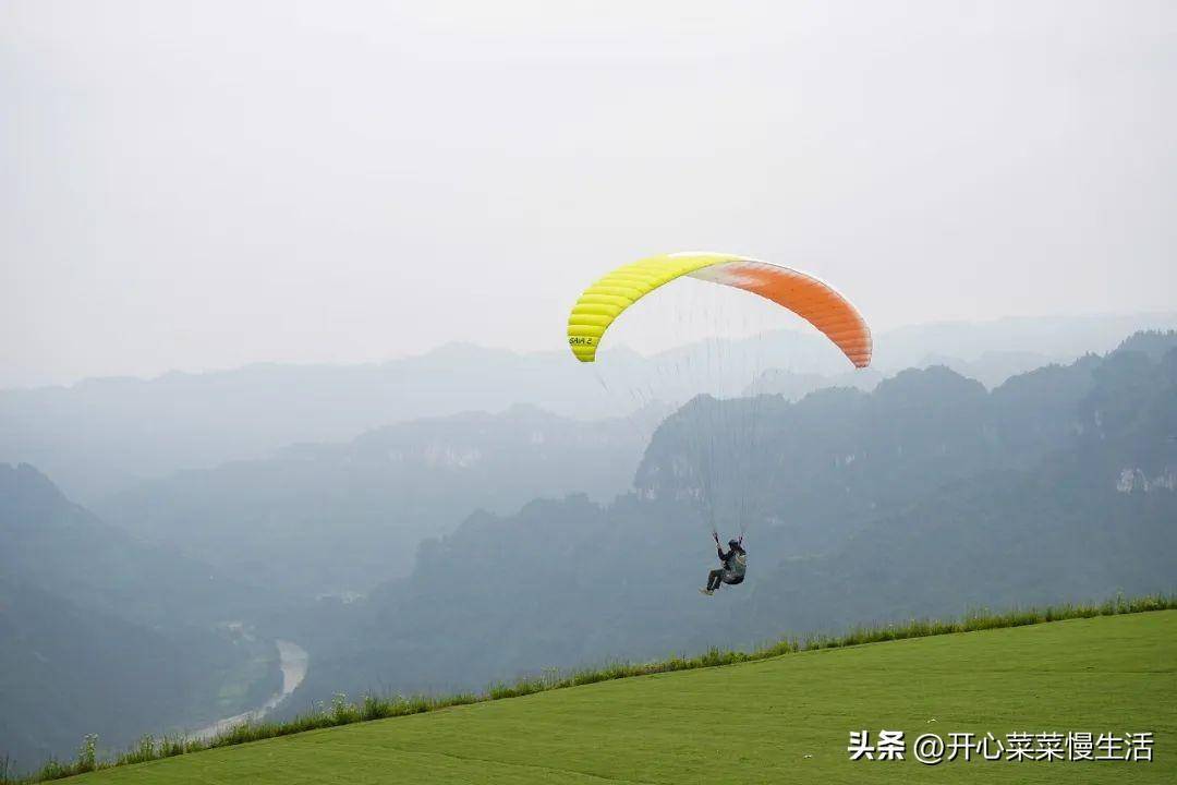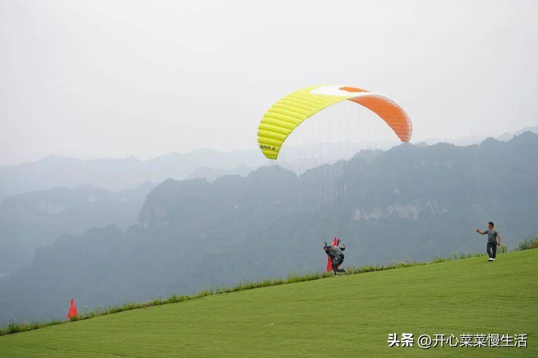 也是湘西州第一个专业滑翔翼训练基地——矮寨滑翔伞基地。我们很幸运,天气很好,还能看到滑翔伞的美景。