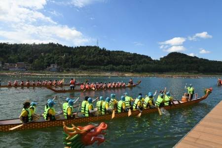 6月19日,一场龙舟竞赛在南充市南部县升钟湖举行。南部县委宣传部供图