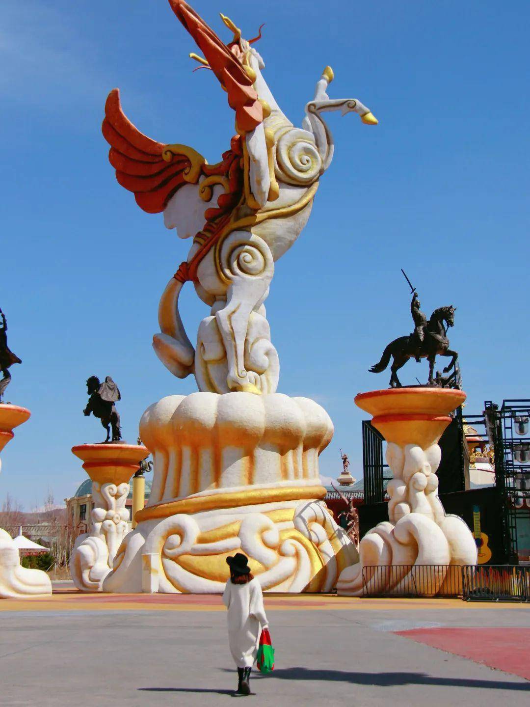【三国街区】有实景演出、剧场演出,NPC和你沉浸式互动,特别推荐 《战神赵子龙》,场景逼真;【皇家马厩】近距离接触可爱的马儿,喂马、选马、牵马、骑马……还能看小猪赛跑;在【英雄广场】可以看 花车巡游, 烟花秀;【天马行空游乐区】里的游乐设施就更不用说了,打卡网红同款摩天轮;肚子饿了也不用担心,这里有【萌马】餐厅。