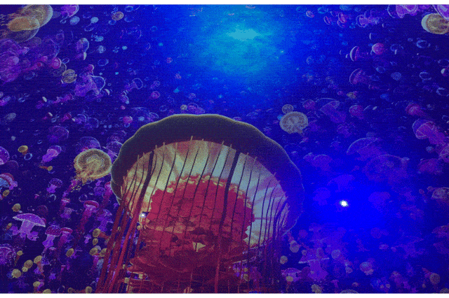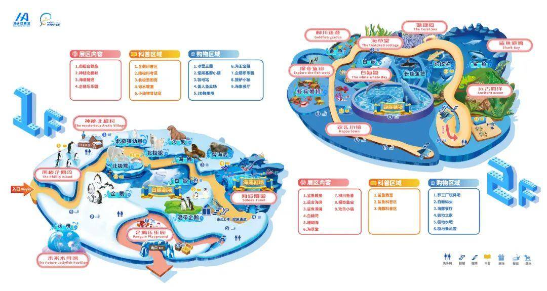 在 【未来水母馆】里欣赏如宇宙星空般唯美的水母生物,了解水母形形色色的知识科普;在 【远古海洋】了解横跨寒武纪一直到新生代、五亿年的地球生物进化史;在 【萌兽湾】近距离邂逅一群萌萌的斑海豹;在室外海洋剧场 【海洋欢乐星球】欣赏人与海洋动物共同演绎的奇妙童话;甚至可以在蔚蓝的海底隧道中品尝极地美食,夜晚支上 帐篷夜宿,与鱼儿同睡……