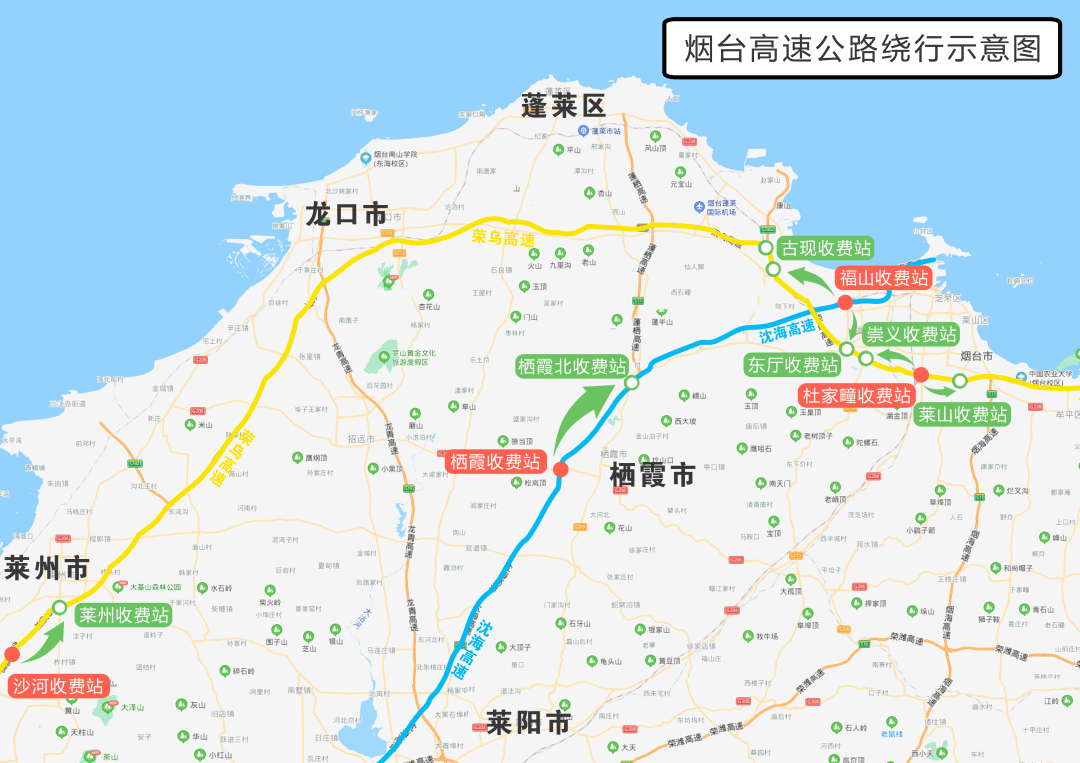 途经荣乌高速 杜家疃收费站的市民朋友,可选择莱山、崇义收费站绕行。