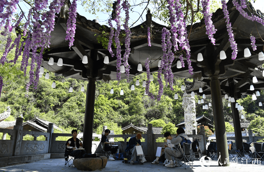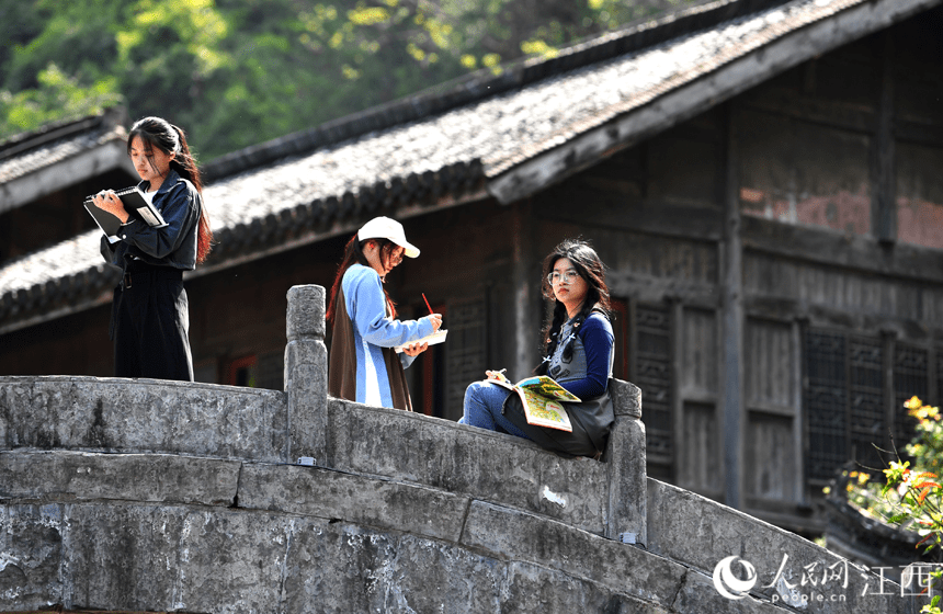 江西省抚州市资溪县大觉山,来自广东的150名美术院校的学生正在绿水青山间写生,不多时,五彩斑斓的春日美景跃然画纸上。