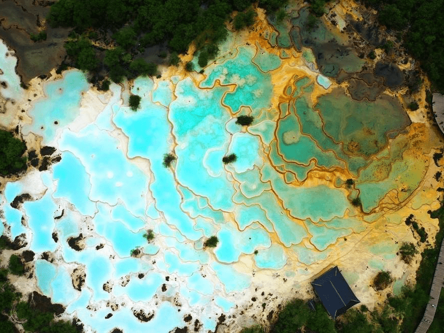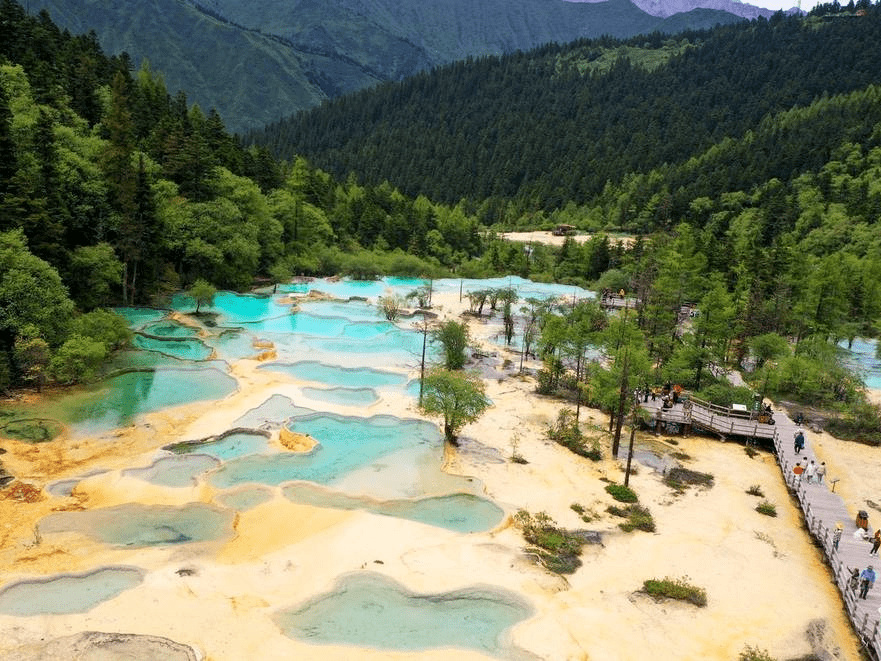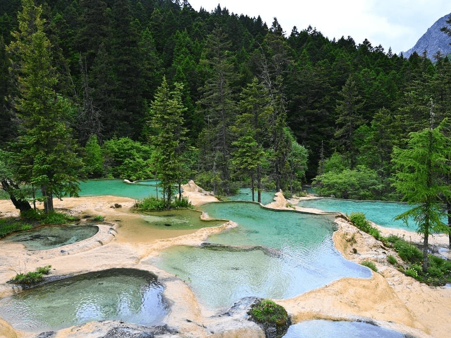 黄龙风景名胜区位于四川省阿坝藏族羌族自治州松潘县,是中国唯一保护完好的高原湿地。