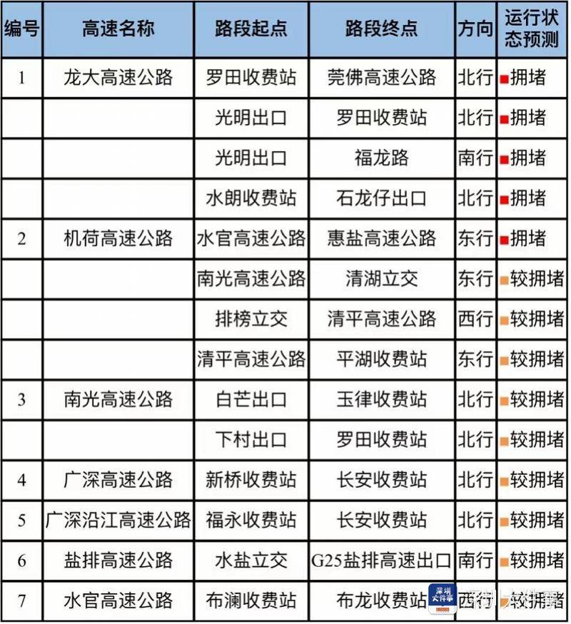 端午假期离深高峰全市高速公路拥堵路段预测。