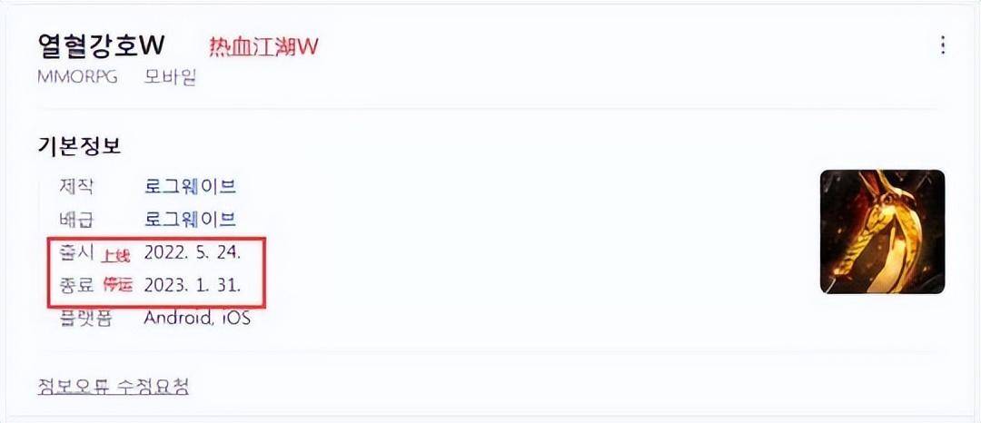 这么好一个IP拿在手,按理说这游戏只要做的不是太拉胯,就算不火,小赚一笔应该也不在话下。然而韩国人用实力证明了没有什么是不可能的,游戏上线不过4个月,就宣布把这个IP玩坏了,要停运了。