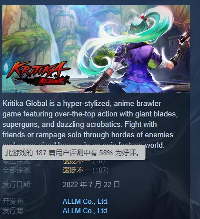虽然《疾风之刃》的韩服国服都停运了,但是Allm运营的steam的国际版2022年上线后还活着,只不过好评率仅有68%,玩家都在吐槽太氪金了,而且没有中文,玩起来实在谈不上友好。